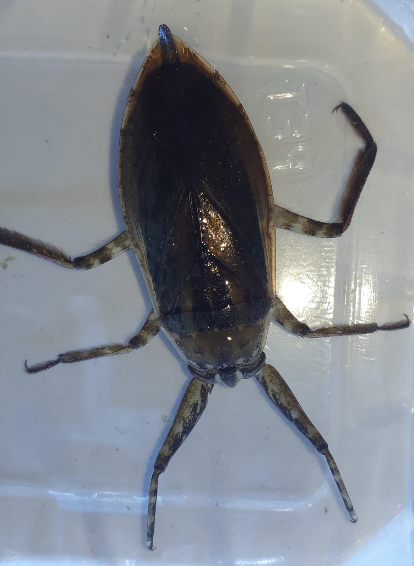 Grosse punaise aquatique. Espèce prédatrice, bien que sans danger, elles sont capable de piqûres douloureuses.
